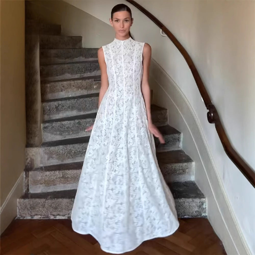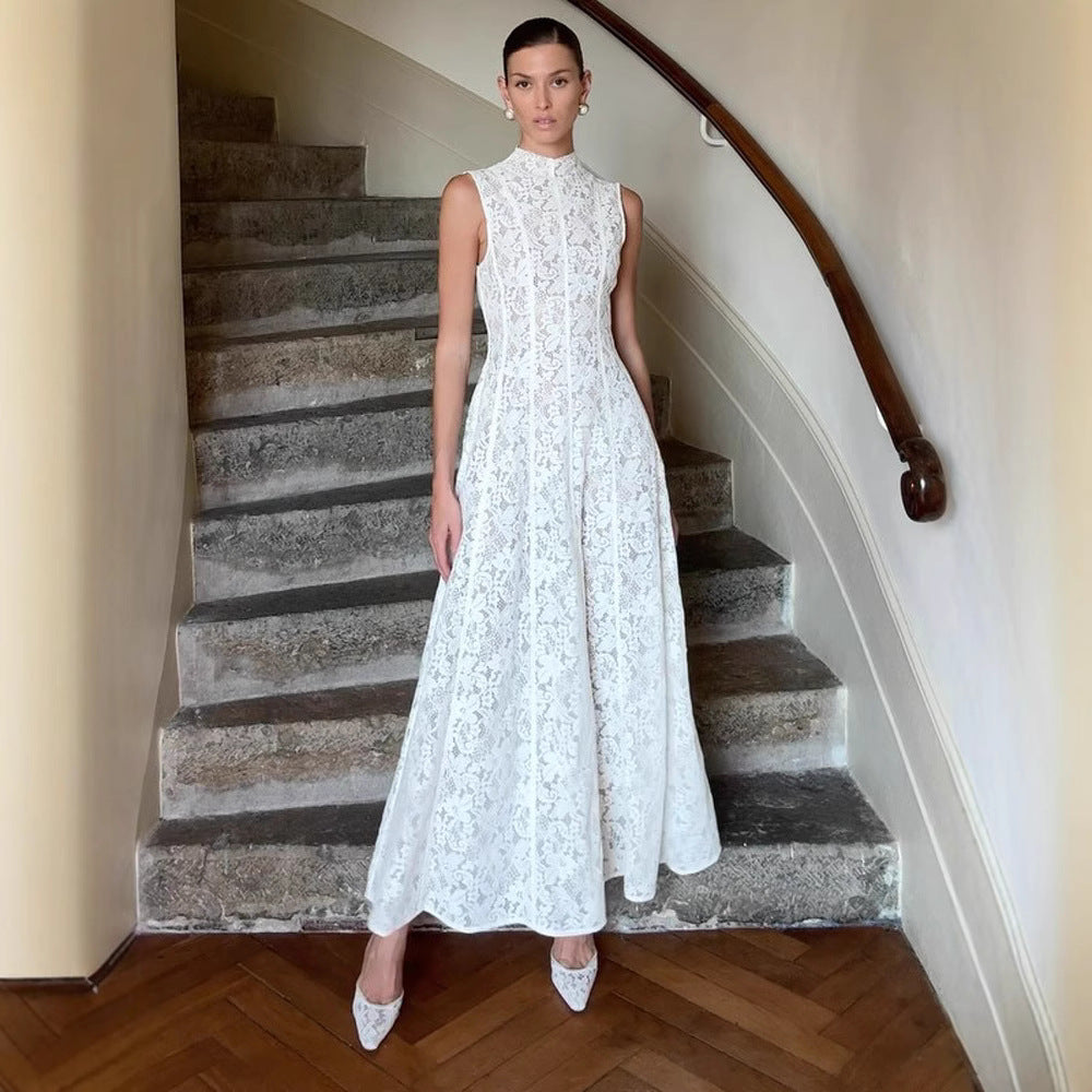 Effortlessly elegant and timelessly chic, this sleeveless lace dress is designed to flatter and elevate your everyday wardrobe. The half turtleneck neckline adds a touch of sophistication, while the high-waist silhouette creates a beautifully streamlined shape that moves with you.